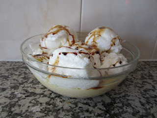 Mas as coisas não correram bem e o creme Inglês talhou... assim tive que improvisar e usar um pudim instantâneo para fazer a base de creme, ficou bom na mesma mas vou tentar fazer novamente esta receita.
